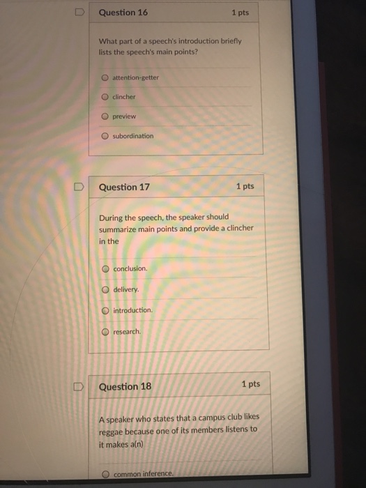 Solved What Part Of A Speech S Introduction Briefly Lists Chegg Com